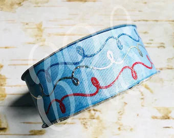 1.5" Silver Foil and Glitter Doodles on light denim USDR grosgrain ribbon